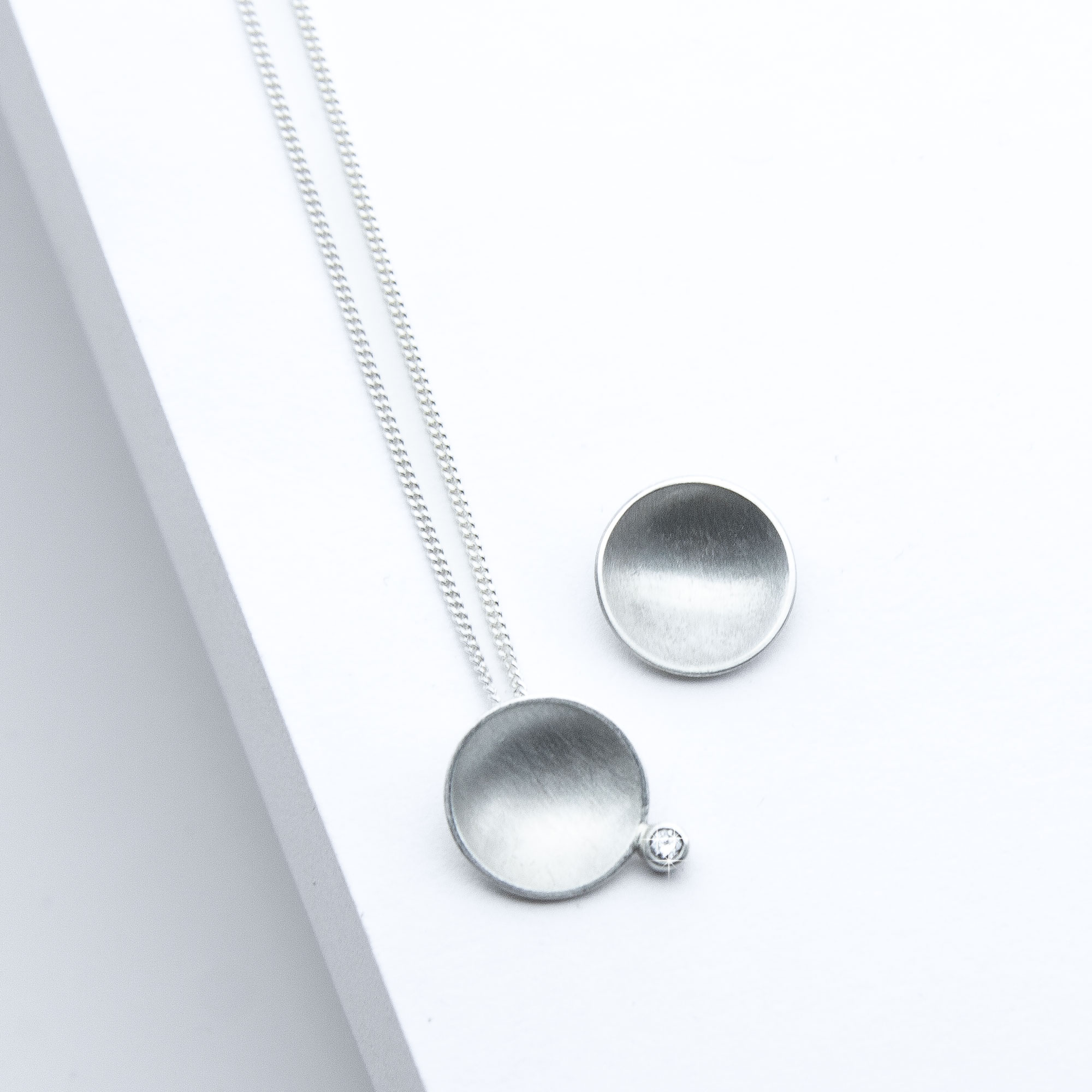 Der Orbit Anhänger wird in unserem Atelier aus massivem 925er Sterlingsilber gefertigt. Die Oberfläche ist leicht mattiert, wodurch der Diamant besonders schön zur Geltung kommt, während der 13mm große Anhänger modern und präsent wirkt, jedoch dezent genug für den Alltag bleibt.